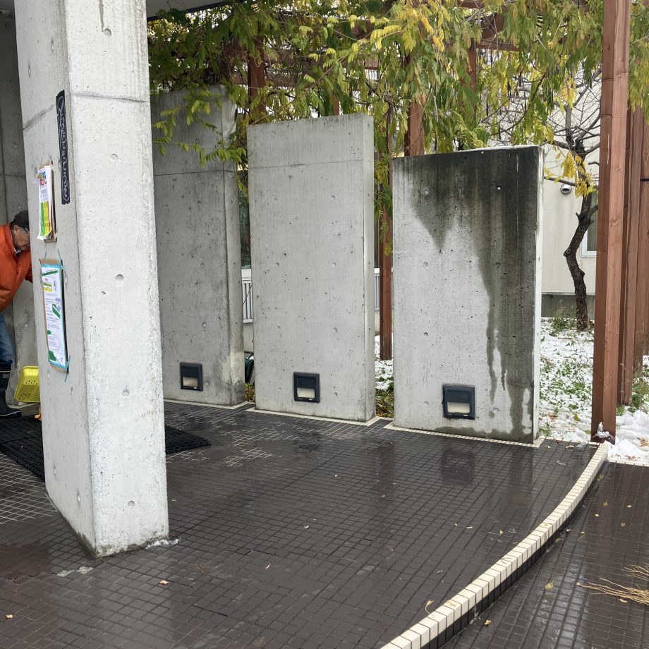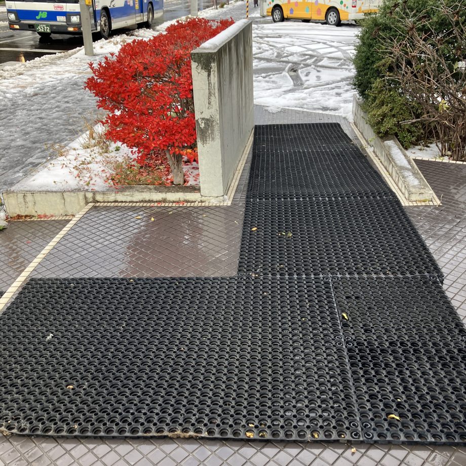 いつも本屋さんを開いている玄関に,冬用のマットを敷きました.