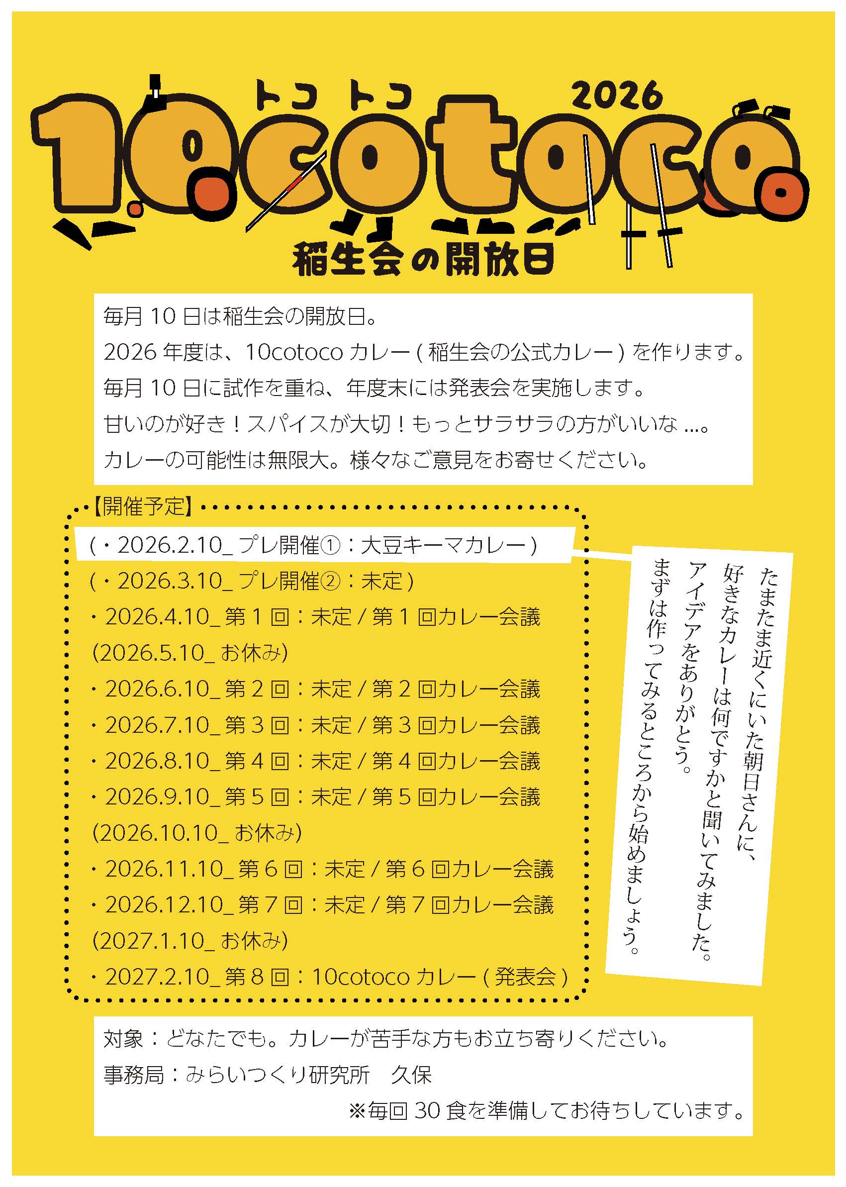 1年をかけて,稲生会の公式カレー「10cotocoカレー」を作ろう!
