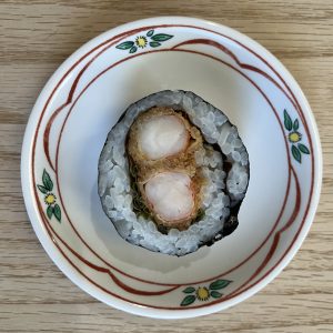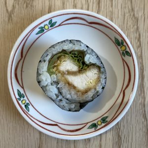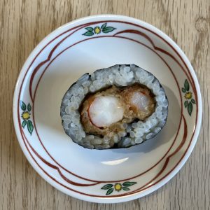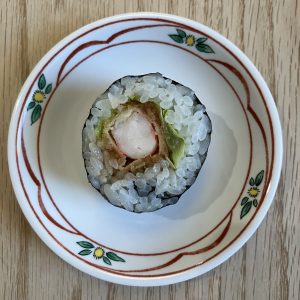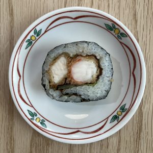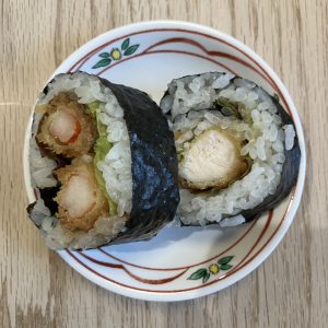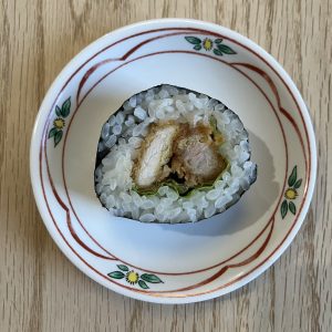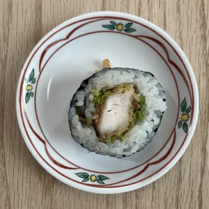 今回は,とんかつ・チキンカツ・エビフライの三種類を巻きました.