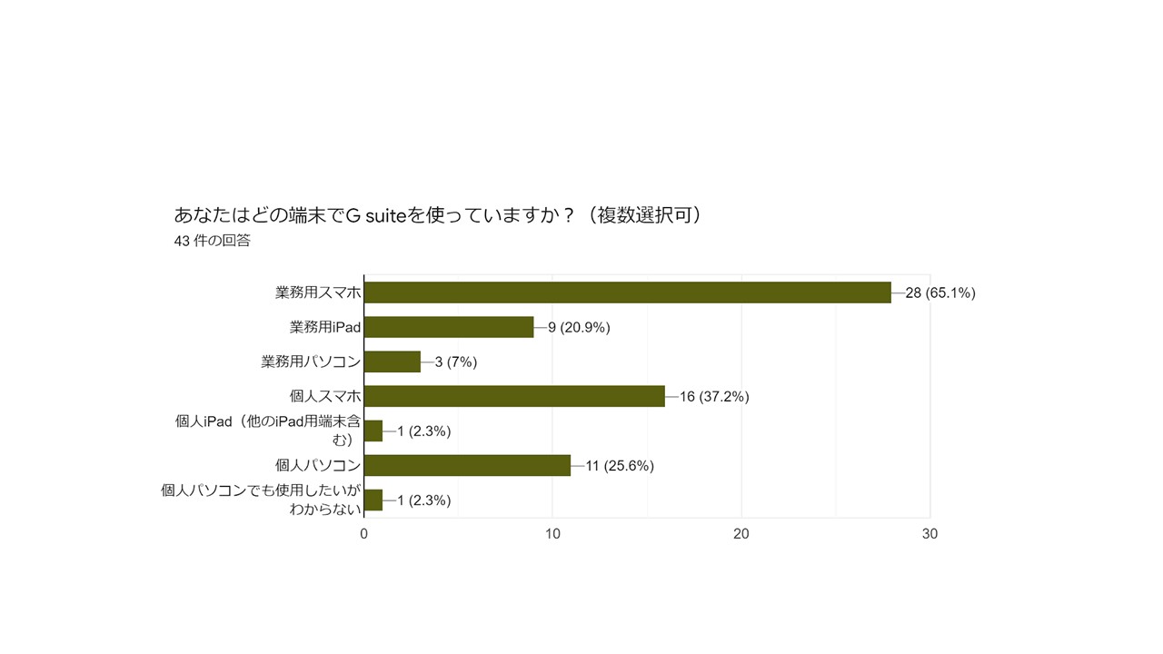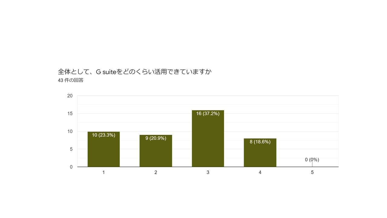 参考までに、G suite導入直後に実施したG suiteの活用に関するFormsの「見える化」を紹介したい。